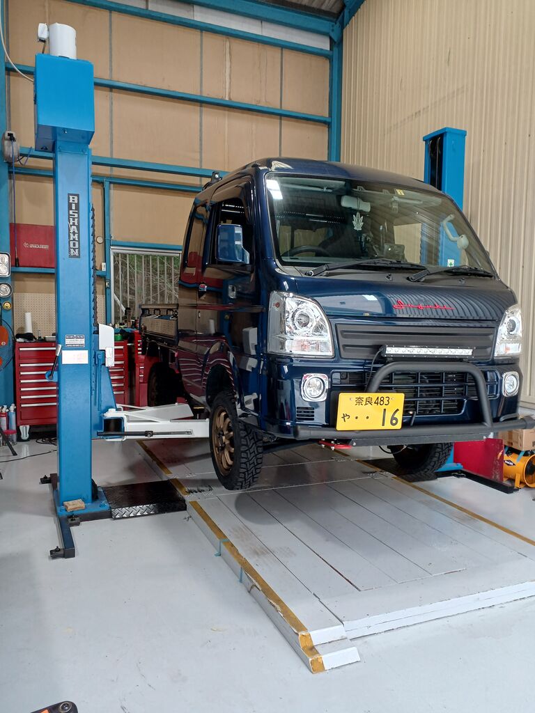 奈良県よりお越しのT様DA16Tスーパーキャリイの足周り交換作業です