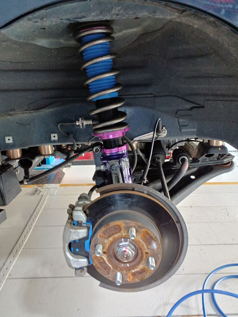 以前にKTV OFFROADの2インチリフトアップキット タイプSをお取付されていまして今回フロント2インチリフトアップ車高調に変更取付させて頂きました
