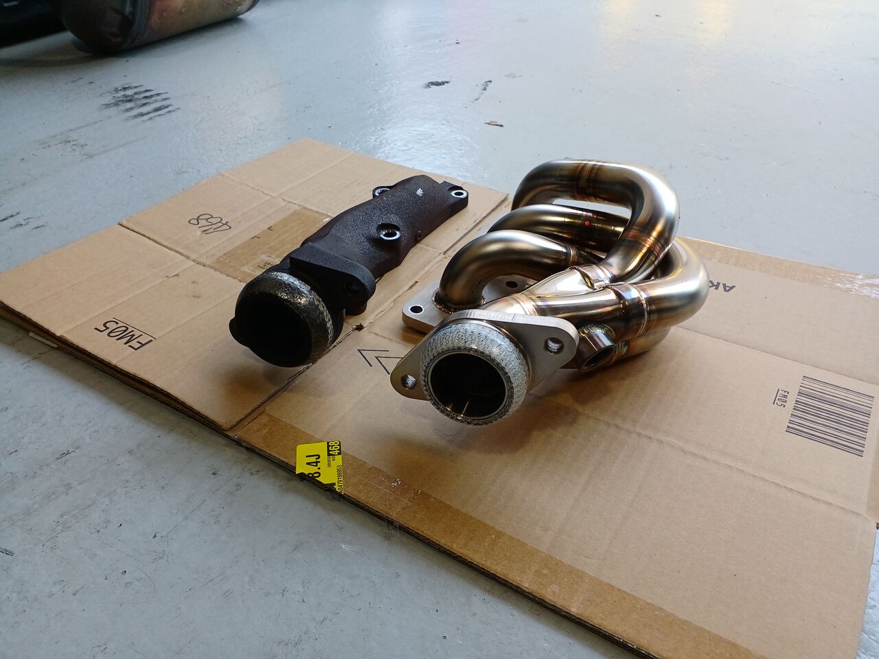 思うのですが 鋼鉄色のアーティスティックな文鎮のようなものが純正エキマニです